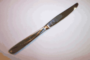 Piece: Hollow Handle Dinner Knife, Newer-style Continuous- shaped Handle attachment, shaped blade