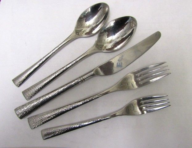 5- Piece Place Setting. Includes one each: Solid Dinner Knife, Dinner Fork, Salad Fork, Teaspoon, Place / Soup Spoon.